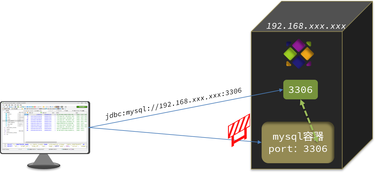 docker run -d:创建并运行一个容器,-d则是让容器以后台进程运行--name mysql: 给容器起个名字叫mysql,你可以叫别的-p 3306:3306: 设置端口映射。- 容器是隔离环境,外界不可访问。但是可以将宿主机端口映射容器内到端口,当访问宿主机指定端口时,就是在访问容器内的端口了。