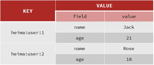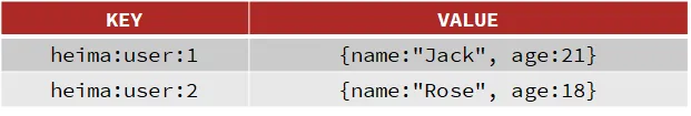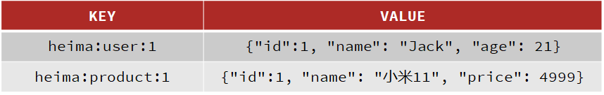 例如我们的项目名称叫 heima,有 user 和 product 两种不同类型的数据,我们可以这样定义 key:
